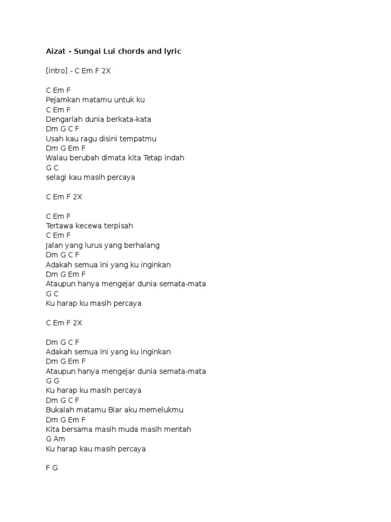 Kord Dan Lirik Lagu Tiba Masaku Sofarz